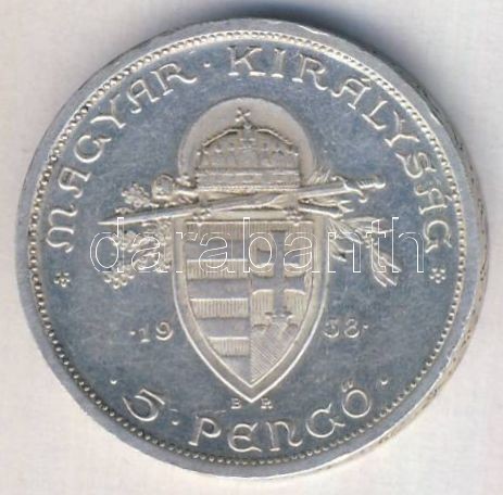 1938 5P "Szent István" Ag T:2 apró ph. https://www.darabanth.com/de/135-Fernauktion/135.0/Numismatik/Munzen-mit-Ungarischen-Munzzeichen~400035/1938-5P-Szent-Istvan-Ag-T2-apro-ph~II386359