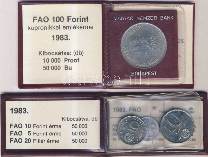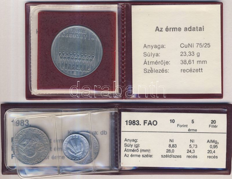 1983. 20f + 5Ft + 10Ft "FAO" + 100Ft "FAO" T:BU Eredeti tokban, tanúsí... https://www.darabanth.com/de/135-Fernauktion/135.0/Numismatik/Munzen-mit-Ungarischen-Munzzeichen~400035/1983-20f-plus-5Ft-plus-10Ft-FAO-plus-100Ft-FAO-TBU-Eredeti-tokban-tanusitvannyal~II386532