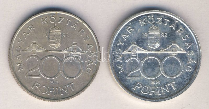 Beschreibung: 1992. 200Ft "MNB" Ag T:1 + 1993. 200Ft Ag "MNB" T:2