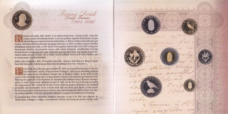 Beschreibung: 2003. 1Ft-100Ft 8klf db, szettben, benne 20Ft "Deák Ferenc" T:PP Csak 7000db!