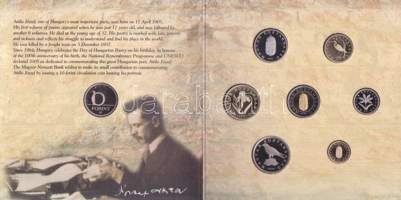 Beschreibung: 2005. 1Ft-100Ft 7klf db + 10Ft "József Attila" szettben T:PP Csak 7000db!
