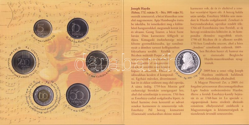 Beschreibung: 2009. 5Ft-200Ft 6klf db + "Joseph Haydn" Ag (999) emlékérem, szettben T:PP,BU Csak 4000db!