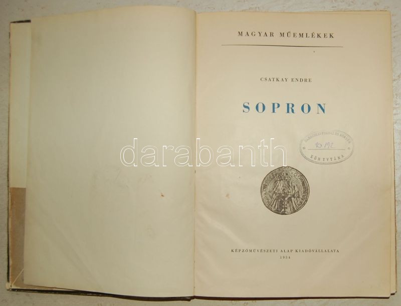 Magyar műemlékek sorozat: Sopron, Képzőművészeti alap kaidóvállalata, 1954, képpekkel gazdagon illusztrált (sarkok kissé kopottak)