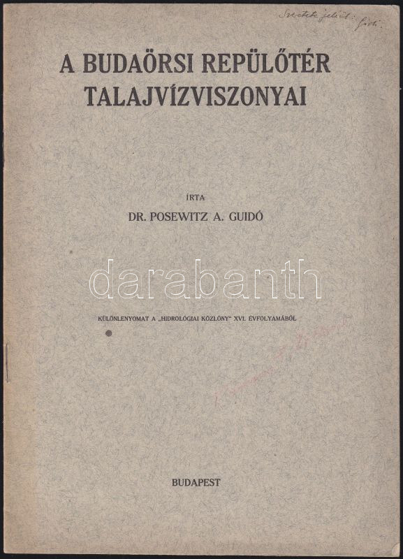 Posewitz A. Guidó: A Budaörsi reptér talajvízviszonyai sok képpel. Bp,... https://www.darabanth.com/de/136-Fernauktion/136.0/Andere-Sammelgebiete/Bucher-Reisen-Stadte~300015/Posewitz-A-Guido-A-Budaorsi-repter-talajvizviszonyai-sok-keppel-Bp-1936-Hydrologiai-kozl~II393462