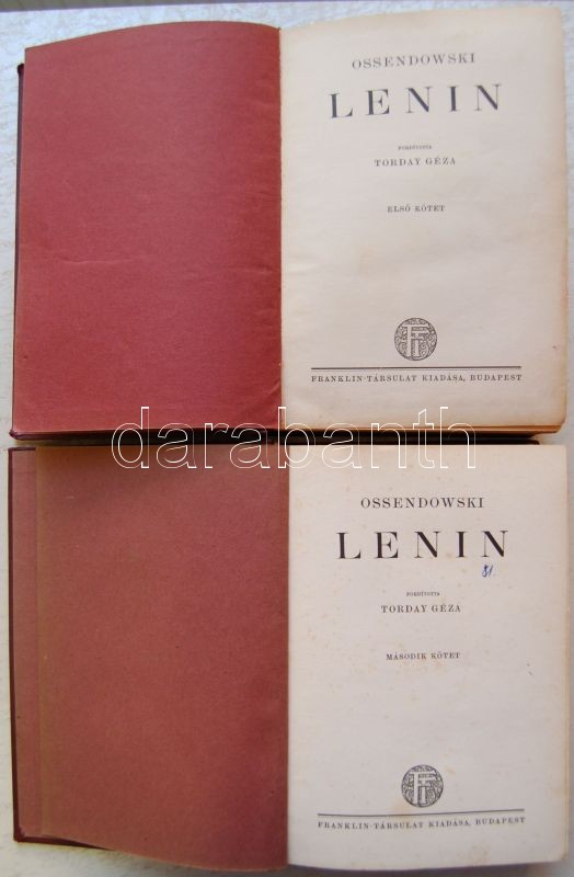 Ossendowski - Lenin I-II. kötet, mindkettő aranyozott kiadói egészvász... https://www.darabanth.com/de/136-Fernauktion/136.0/Andere-Sammelgebiete/Bucher-sonstige-Raritaten~300020/Ossendowski--Lenin-I-II-kotet-mindketto-aranyozott-kiadoi-egeszvaszon-kotesben-Franklin-T~II386180
