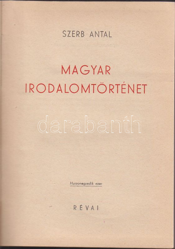 Szerb Antal: Magyar irodalomtörténet, Révai Bp. https://www.darabanth.com/de/136-Fernauktion/136.0/Andere-Sammelgebiete/Bucher-sonstige-Raritaten~300020/Szerb-Antal-Magyar-irodalomtortenet-Revai-Bp~II393451