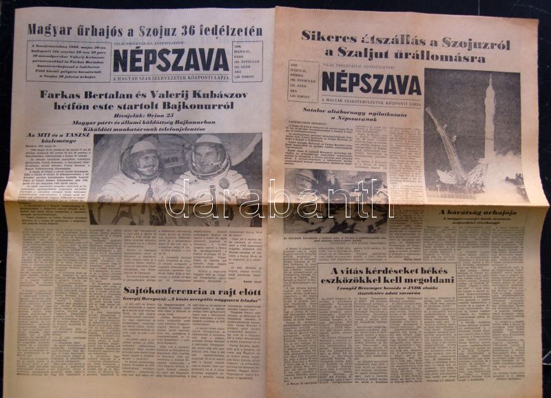 2 db 1980-as Népszava szám: Farkas Bertalan az űrben https://www.darabanth.com/de/136-Fernauktion/136.0/Andere-Sammelgebiete/Drucksachen~223/2-db-1980-as-Nepszava-szam-Farkas-Bertalan-az-urben~II394086