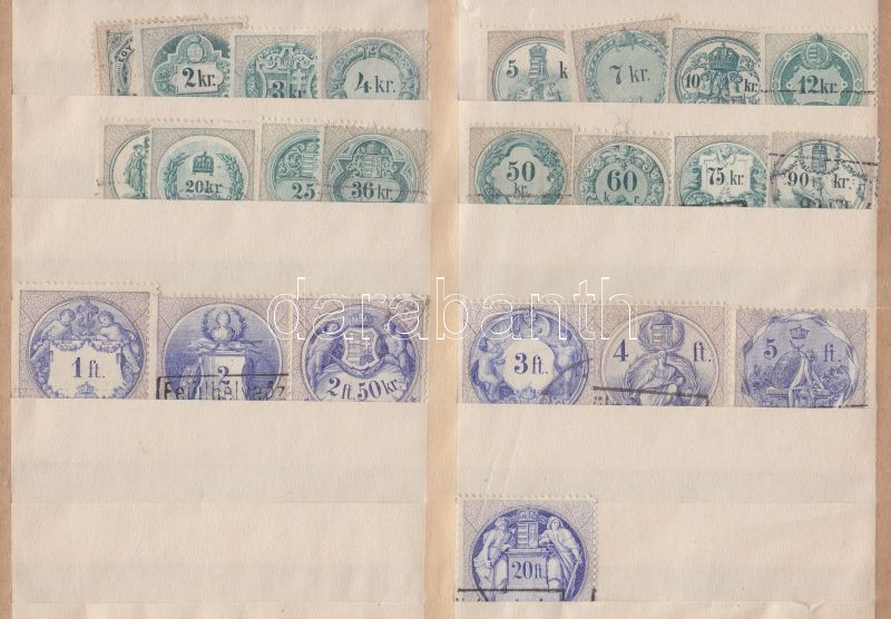 1891 Okmánybélyeg sor 23 db klf értéke https://www.darabanth.com/de/136-Fernauktion/136.0/Andere-Sammelgebiete/Stempelmarken~211/1891-Okmanybelyeg-sor-23-db-klf-erteke~II393683