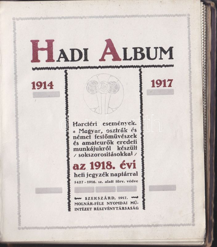 1917 Hadi Album - harctéri események, 1918. évi heti jegyzék naptárral https://www.darabanth.com/de/137-Fernauktion/137.0/Andere-Sammelgebiete/Bucher-sonstige-Raritaten~296/1917-Hadi-Album--harcteri-esemenyek-1918-evi-heti-jegyzek-naptarral~II397478