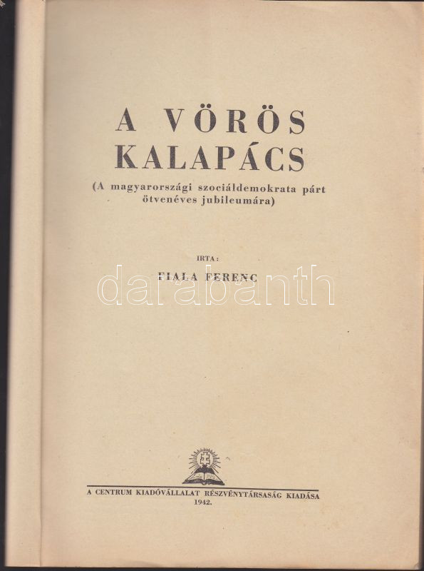 1942 Fiala Ferenc: A vörös kalapács - A magyarországi szociáldemokrata... https://www.darabanth.com/de/137-Fernauktion/137.0/Andere-Sammelgebiete/Bucher-sonstige-Raritaten~296/1942-Fiala-Ferenc-A-voros-kalapacs--A-magyarorszagi-szocialdemokrata-part-50-eves-jubileumC3~II398170