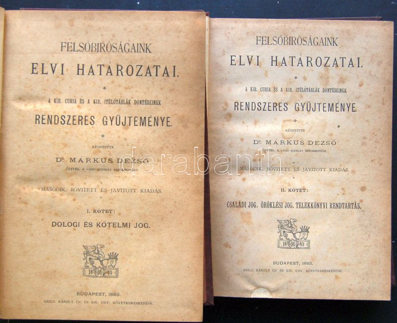 Márkus DezsÅ‘: FelsÅ‘bÃróságaink elvi határozatai a Curia és az ÃtélÅ‘táb... https://www.darabanth.com/de/137-Fernauktion/137.0/Andere-Sammelgebiete/Bucher-sonstige-Raritaten~296/Markus-Dezso-Felsobirosagaink-elvi-hatarozatai-a-Curia-es-az-itelotablek-donteseinek~II395170
