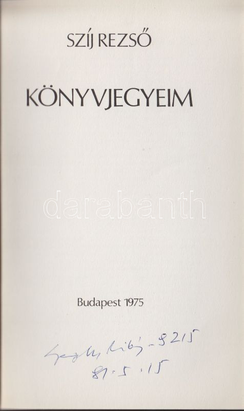 Szíj Rezső: Könyvjegyeim, Bp. 1975, kézzel sorszámozott, dedikált péld... https://www.darabanth.com/de/137-Fernauktion/137.0/Andere-Sammelgebiete/Bucher-sonstige-Raritaten~296/Szij-Rezso-Konyvjegyeim-Bp-1975-kezzel-sorszamozott-dedikalt-peldany-a-szerzo-ajanla~II398603