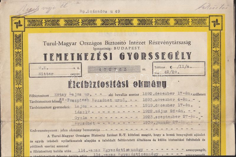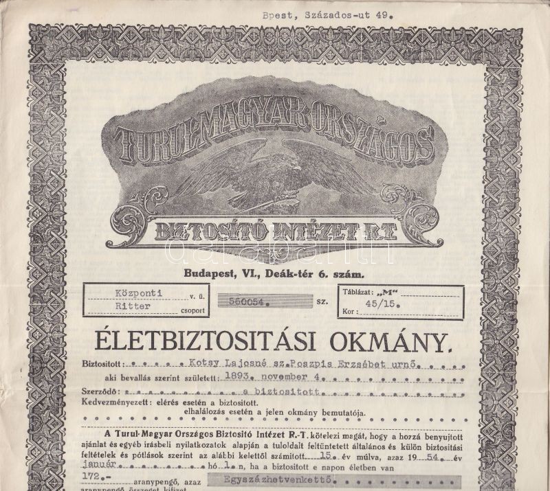 1934-39 2 db biztosítási kötvény https://www.darabanth.com/de/137-Fernauktion/137.0/Andere-Sammelgebiete/Dokument~280/1934-39-2-db-biztositasi-kotveny~II397882