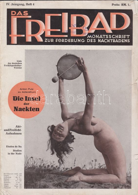 cca 1940 Das Freibad - Nudista magazin művészi akt fotókkal (borító el... https://www.darabanth.com/de/137-Fernauktion/137.0/Andere-Sammelgebiete/Drucksachen~292/cca-1940-Das-Freibad--Nudista-magazin-muveszi-akt-fotokkal-borito-elvalt-Pre-war-nudist-m~II397977