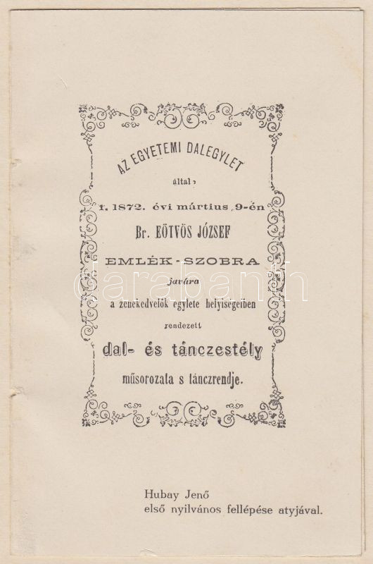 1872 Táncrend estélyről, melyen Hubay Jenő hegedűművész először lépett... https://www.darabanth.com/de/138-Fernauktion/138.0/Andere-Sammelgebiete/Drucksachen~400030/1872-Tancrend-estelyrol-melyen-Hubay-Jeno-hegedumuvesz-eloszor-lepett-fel~II402309