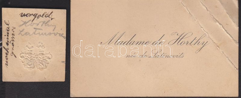 Madame de Horthy / née de Latinovits dombornyomású névjegykártyája via... https://www.darabanth.com/de/138-Fernauktion/138.0/Andere-Sammelgebiete/Drucksachen~400030/Madame-de-Horthy-nee-de-Latinovits-dombornyomasu-nevjegykartyaja-viaszpecsettel-ellatva~II401089