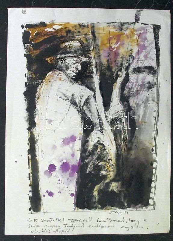 1988 Miklós Árpád (1958): Színezett tollrajz, szerzői ajánlással, 23x3... https://www.darabanth.com/de/138-Fernauktion/138.0/Andere-Sammelgebiete/Gemalde-und-Grafiken~400015/1988-Miklos-Arpad-1958-Szinezett-tollrajz-szerzoi-ajanlassal-23x32cm~II402279