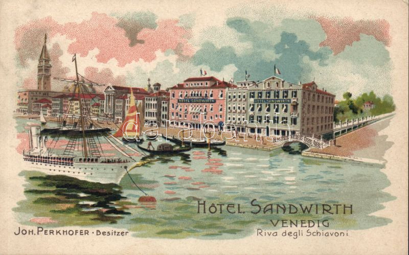 Venice Hotel Sandwirth litho https://www.darabanth.com/de/138-Fernauktion/138.0/Ansichtskarten/Italien~400066/Venice-Hotel-Sandwirth-litho~II399154
