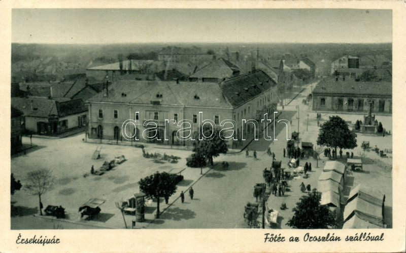 Érsekújvár main square, Hotel Oroszlán https://www.darabanth.com/de/138-Fernauktion/138.0/Ansichtskarten/Slowakei~400007/Ersekujvar-main-square-Hotel-Oroszlan~II400236