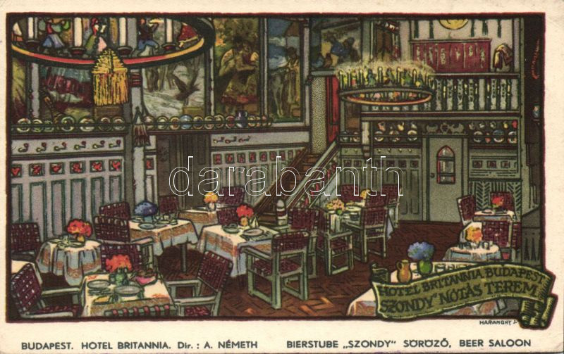 Budapest VI. Hotel Britannia és Szondy Söröző s: Haranghy (Rb) https://www.darabanth.com/de/138-Fernauktion/138.0/Ansichtskarten/Ungarn~400005/Budapest-VI-Hotel-Britannia-es-Szondy-Sorozo-s-Haranghy-Rb~II402466