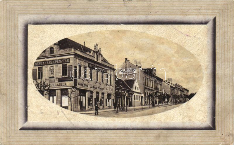Beschreibung: Nagykanizsa Fő út Hájer Vince cukrászdájával, Pollák József bőrkereskedésével, valamint Haas Vilmos és Balogh Jenő üzleteivel (EB)