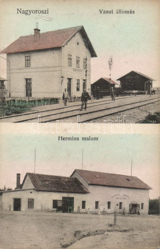 Beschreibung: Nagyoroszi Vasútállomás és Hermina malom