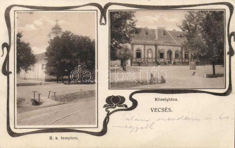Vecsés községháza és református templom https://www.darabanth.com/de/138-Fernauktion/138.0/Ansichtskarten/Ungarn~400005/Vecses-kozseghaza-es-reformatus-templom~II402798