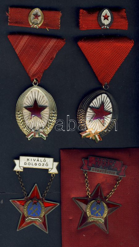 DN. Munka Érdemrend bronz és arany fokozata + 2db Kiváló Dolgozó kitün... https://www.darabanth.com/de/138-Fernauktion/138.0/Numismatik/Ungarische-Edelmetall-Gedenkmunzen-und-Plaketten~400118/DN-Munka-Erdemrend-bronz-es-arany-fokozata-plus-2db-Kivalo-Dolgozo-kituntetes-eredeti-tokban-T~II403265