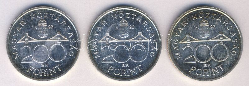 1992. 200Ft Ag "MNB" (3x) T:1 https://www.darabanth.com/de/138-Fernauktion/138.0/Numismatik/Ungarische-Munzen~400117/1992-200Ft-Ag-MNB-3x-T1~II401803