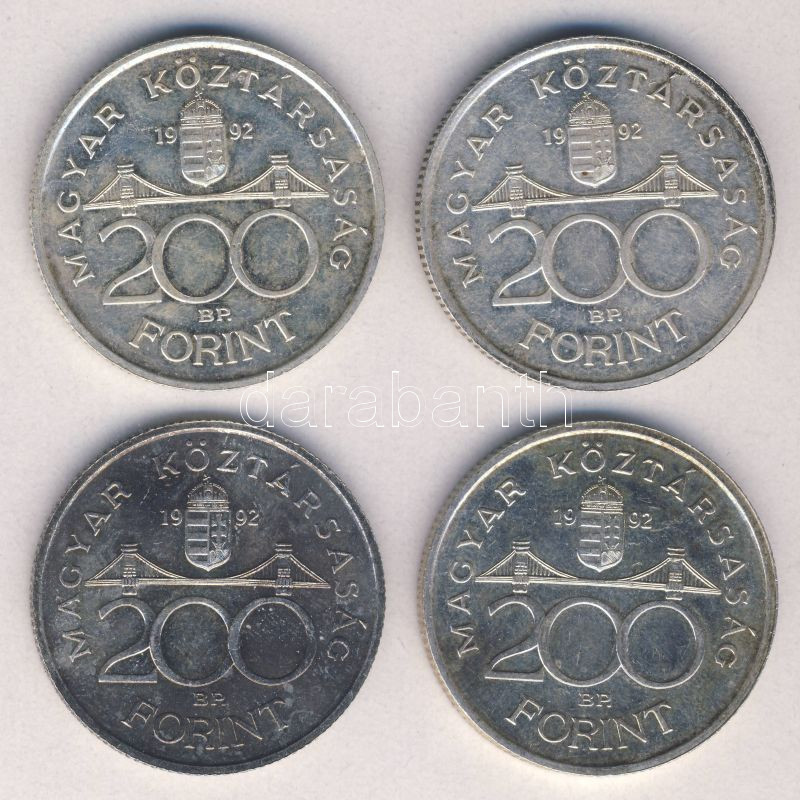 1992. 200Ft "MNB" Ag (4x) T:1-,2 https://www.darabanth.com/de/138-Fernauktion/138.0/Numismatik/Ungarische-Munzen~400117/1992-200Ft-MNB-Ag-4x-T1-2~II402245