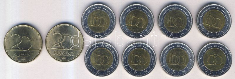 2002. 100Ft "Kossuth" (8x) + 2003. 20Ft (2x) T:2 https://www.darabanth.com/de/138-Fernauktion/138.0/Numismatik/Ungarische-Munzen~400117/2002-100Ft-Kossuth-8x-plus-2003-20Ft-2x-T2~II402403