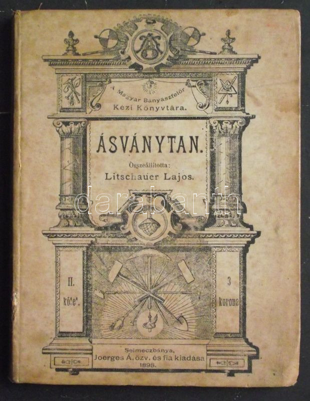 Litschauer Lajos: Ásványtan különös tekintettel Magyarország bányászati viszonyaira, Selmecbánya 1898 Jorges A és fia kiad., festett egészvászon kötés 180p.