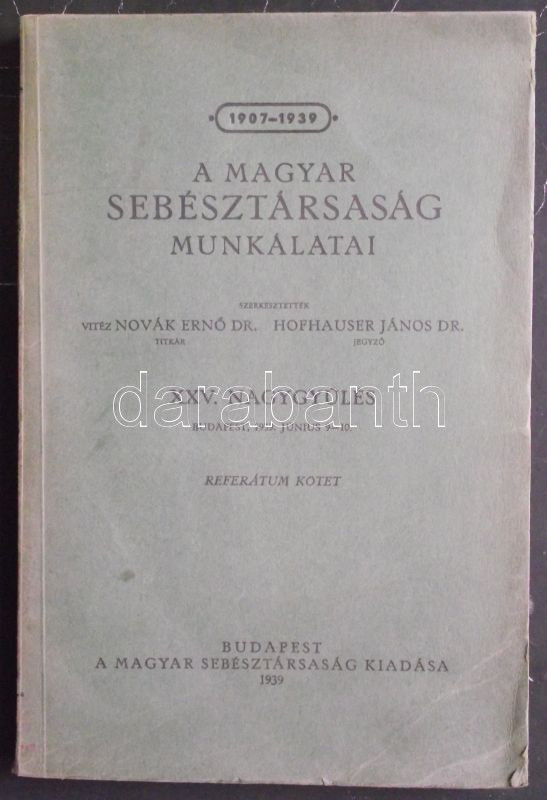 1907-1939 A magyar sebésztársaság munkálatai, Bp. M. Sebésztársaság 1939, 336 oldal felvágatlan