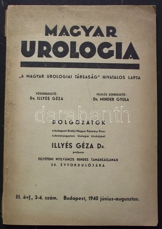 1940 A magyar Urológia c. lap különkiadása Dr. Illyés Géza tiszteletér... https://www.darabanth.com/de/139-Fernauktion/139.0/Andere-Sammelgebiete/Bucher-Medizin~11025/1940-A-magyar-Urologia-c-lap-kulonkiadasa-Dr-Illyes-Geza-tiszteletere~II408699
