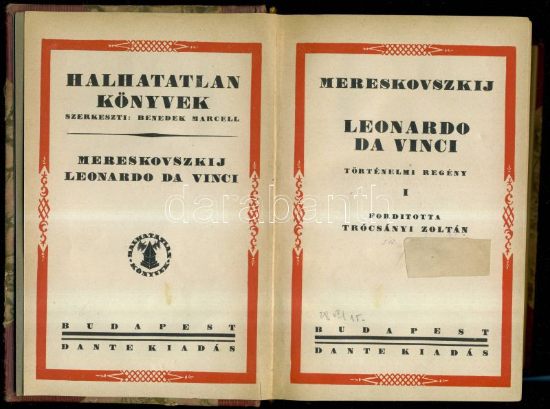 1928 Mereskovszkij: Leonardo da Vinci történelmi regény I-II. kötete e... https://www.darabanth.com/de/139-Fernauktion/139.0/Andere-Sammelgebiete/Bucher-sonstige-Raritaten~11022/1928-Mereskovszkij-Leonardo-da-Vinci-tortenelmi-regeny-I-II-kotete-egyben-Dante-Kiado-Bp-~II408656