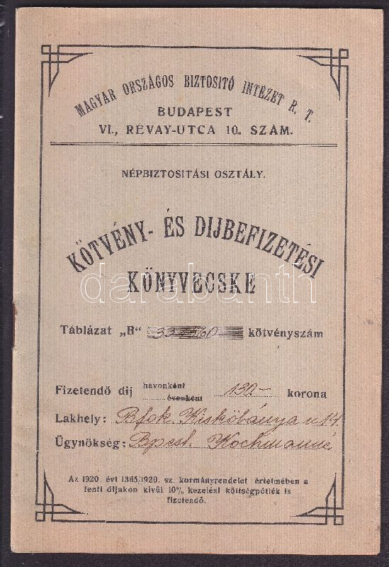 1923 Magyar Országos Biztosító Intézet Rt. - Kötvény- és díjbefizetési... https://www.darabanth.com/de/139-Fernauktion/139.0/Andere-Sammelgebiete/Dokument~11004/1923-Magyar-Orszagos-Biztosito-Intezet-Rt--Kotveny-es-dijbefizetesi-konyvecske-okmanyb~II408364