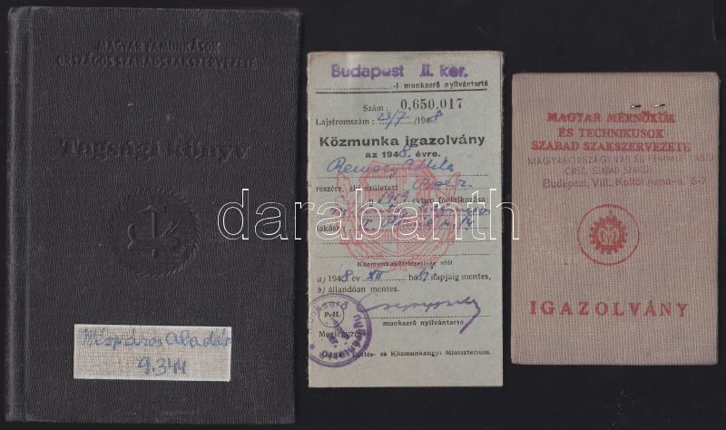 7db különféle igazolvány, tagsági könyv, 1940-es és 1950-es évekből https://www.darabanth.com/de/139-Fernauktion/139.0/Andere-Sammelgebiete/Dokument~11004/7db-kulonfele-igazolvany-tagsagi-konyv-1940-es-es-1950-es-evekbol~II407345