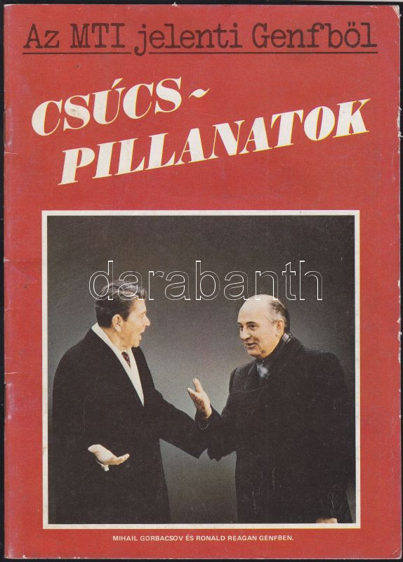 1985 Az MTI jelenti Genfből: Csúcs-pillanatok képes kiadvány az Reagan... https://www.darabanth.com/de/139-Fernauktion/139.0/Andere-Sammelgebiete/Drucksachen~11016/1985-Az-MTI-jelenti-Genfbol-Csucs-pillanatok-kepes-kiadvany-az-Reagan-Gorbacsov-talalkozorol~II405095