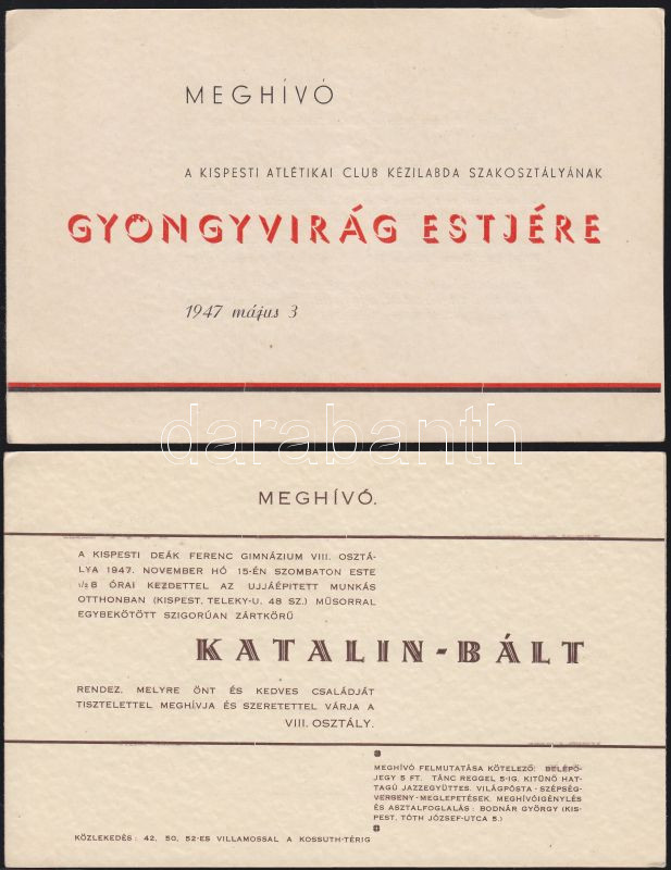cca 1940-1948 39 db meghívó főleg kispesti bálokra https://www.darabanth.com/de/139-Fernauktion/139.0/Andere-Sammelgebiete/Drucksachen~11016/cca-1940-1948-39-db-meghivo-foleg-kispesti-balokra~II406578