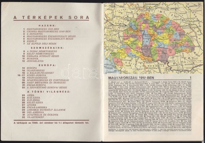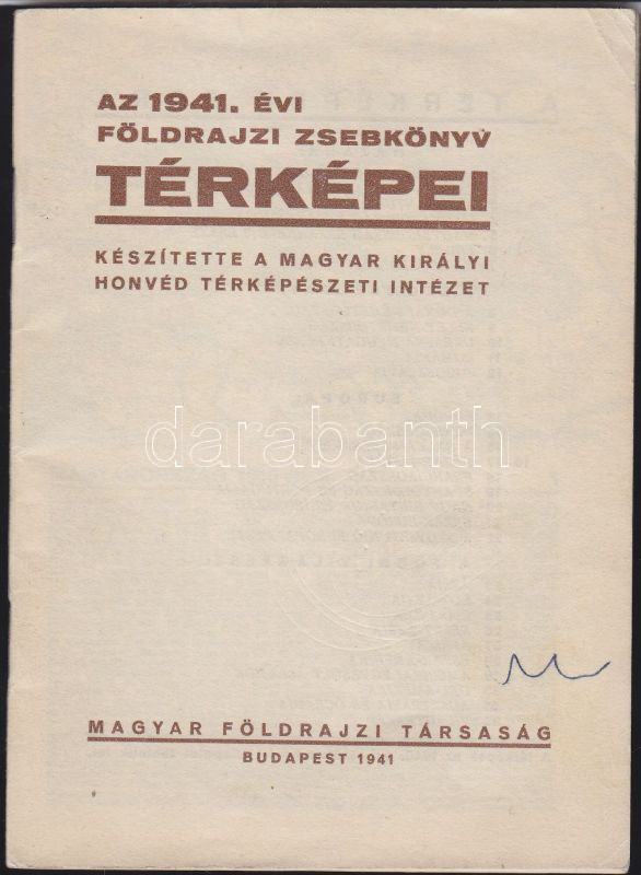 1941 Földrajzi társaság: Földrajzi zsebkönyv térképei füzet https://www.darabanth.com/de/139-Fernauktion/139.0/Andere-Sammelgebiete/Landkarten~11014/1941-Foldrajzi-tarsasag-Foldrajzi-zsebkonyv-terkepei-fuzet~II406595