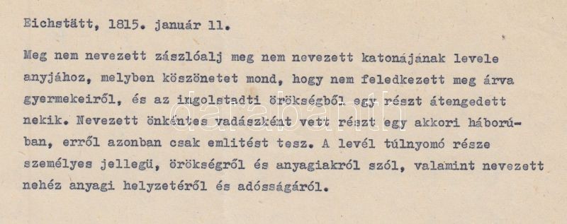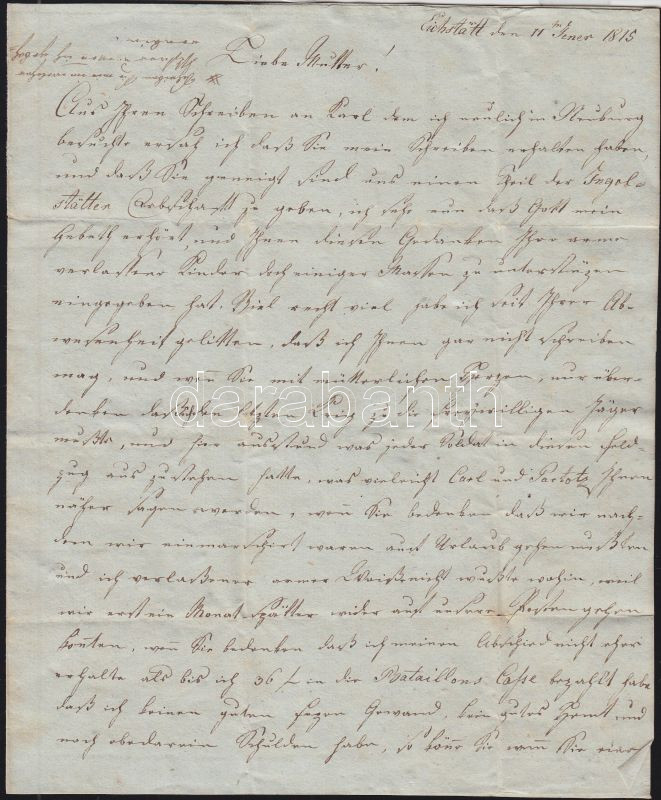 1815 Eichstatt-beli, a Napóleoni háborúkban önkéntes vadászként részt vett katona levele / Letter of a soldier from Eichstatt who participated in the Napoleaon war as voluntary hunter