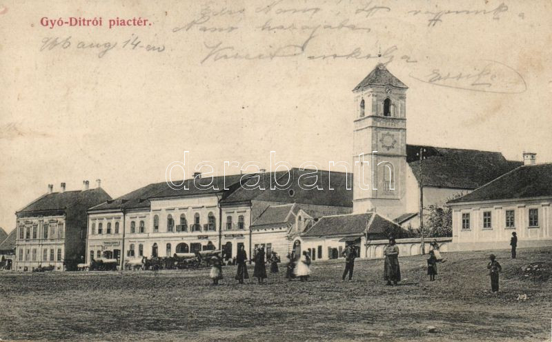 Beschreibung: Gyergyótölgyes market square with the shop of Antal Melik