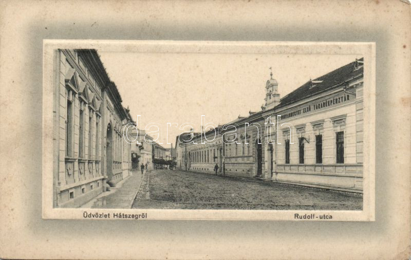 Hátszeg Rudolf street Emb. https://www.darabanth.com/de/139-Fernauktion/139.0/Ansichtskarten/Siebenburgen~11035/Hatszeg-Rudolf-street-Emb~II405973