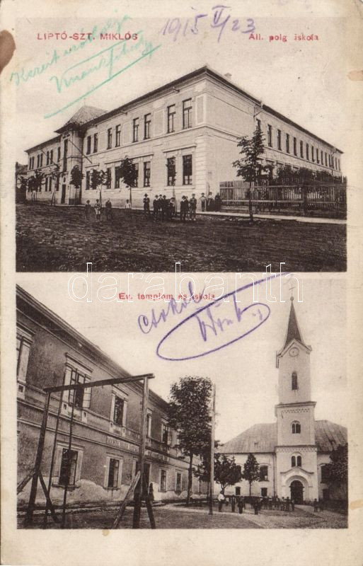 Beschreibung: Liptószentmiklós schools and Evangelist church (fl)