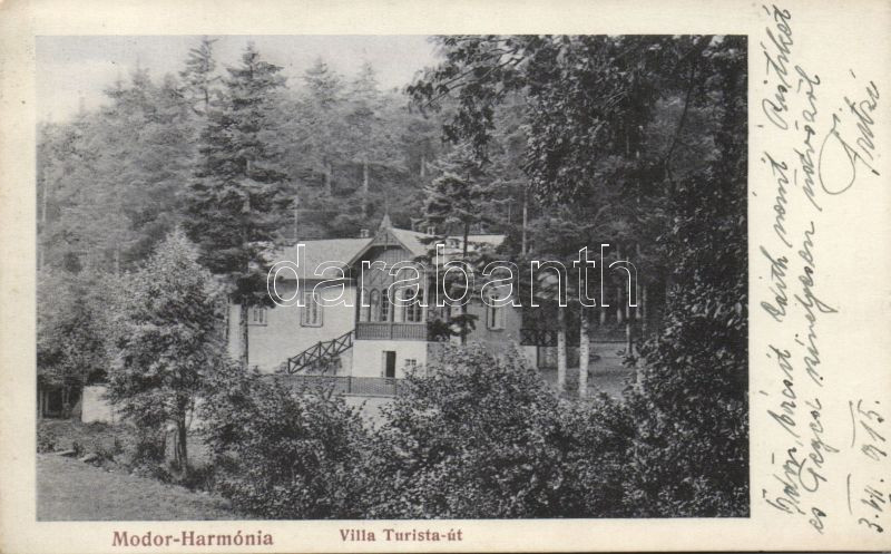 Modor-Harmónia tourist villa https://www.darabanth.com/de/139-Fernauktion/139.0/Ansichtskarten/Slowakei~11036/Modor-Harmonia-tourist-villa~II406393