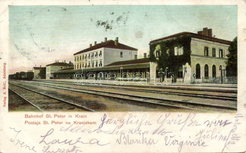 St Peter na Krajnskem railway station (EB) https://www.darabanth.com/de/139-Fernauktion/139.0/Ansichtskarten/Slowenien~11067/St-Peter-na-Krajnskem-railway-station-EB~II405382