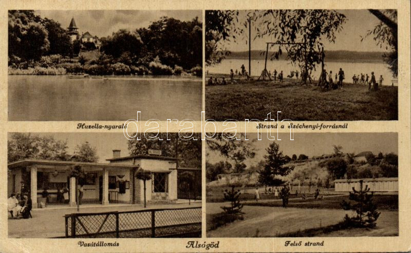 Alsógöd vasútállomással és a Huzella-nyaralóval https://www.darabanth.com/de/139-Fernauktion/139.0/Ansichtskarten/Ungarn~11033/Alsogod-vasutallomassal-es-a-Huzella-nyaraloval~II406839