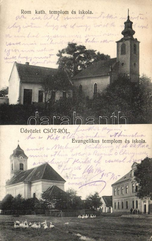 Csót Katolikus és Evangélikus templom és iskola https://www.darabanth.com/de/139-Fernauktion/139.0/Ansichtskarten/Ungarn~11033/Csot-Katolikus-es-Evangelikus-templom-es-iskola~II406304
