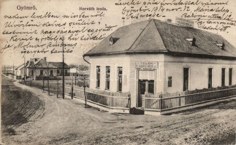 Gyömrő Horváth telek eladási iroda (fl) https://www.darabanth.com/de/139-Fernauktion/139.0/Ansichtskarten/Ungarn~11033/Gyomro-Horvath-telek-eladasi-iroda-fl~II406305
