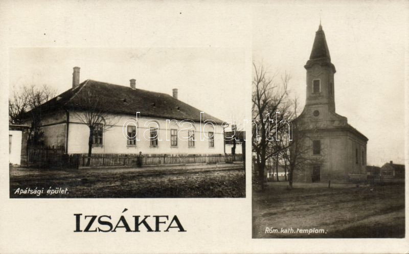 Izsákfa Katolikus templom és apátsági épület https://www.darabanth.com/de/139-Fernauktion/139.0/Ansichtskarten/Ungarn~11033/Izsakfa-Katolikus-templom-es-apatsagi-epulet~II406793